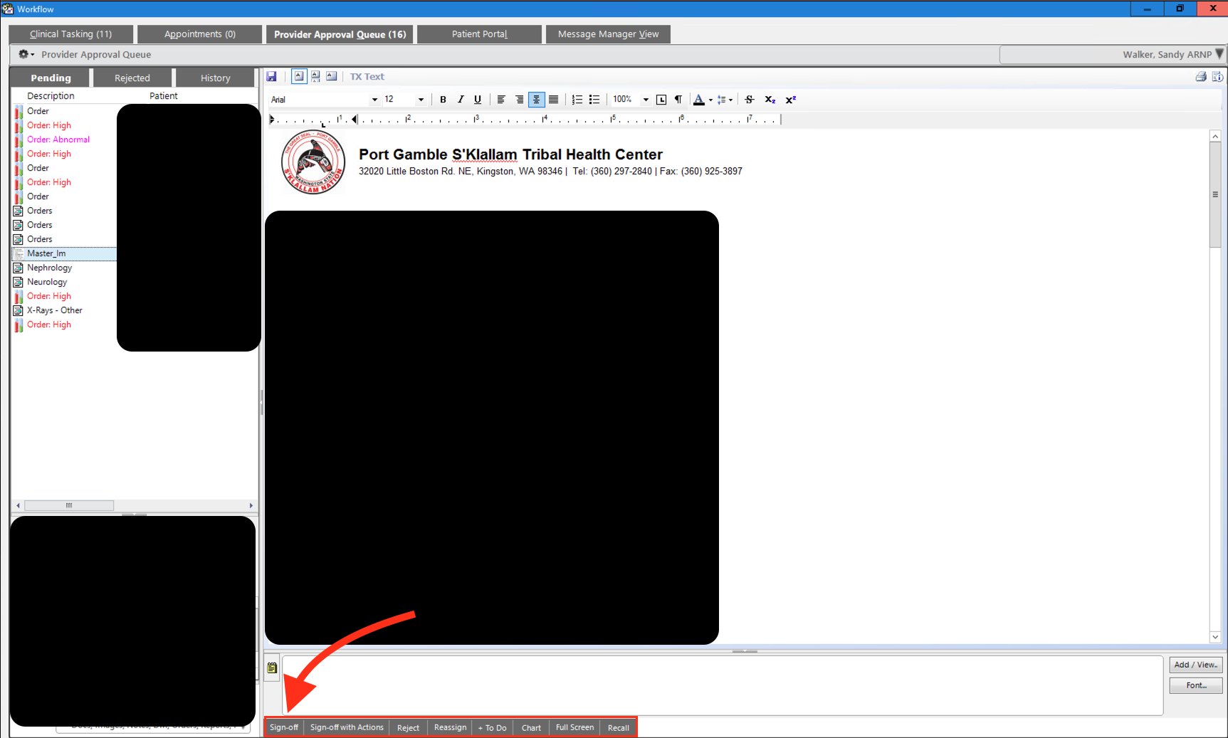 In your inbox under PAQ, once you select a document, like Master_im for example, you'll notice down below there is a sign off button or sign of with actions if you want to add onto the document.